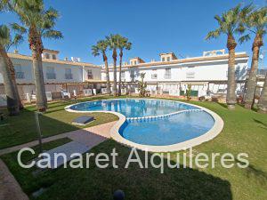 Complejo cerrado con 120 chalets adosados. Tiene 4 piscinas de adultos y 4 infantiles, así como unos amplios jardines comunitarios muy bien cuidados. Todas las casitas tienen terraza directa a la piscina protegidas por un toldo, así como solárium.